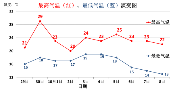 9 月 29 日 | 阴天有小到中雨 | 16~ 21℃ | 偏北风 2~ 3 级 | |||