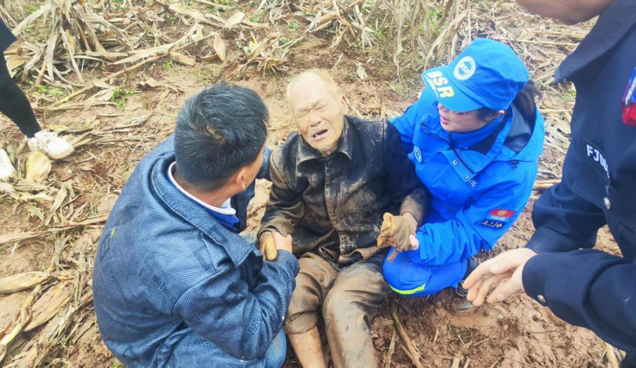 在无人机的精准引导下,救援队队员深一脚浅一脚地穿越泥泞湿滑的山路,克服植被茂密、地形复杂等困难,仅用10分钟便顺利抵达老人身边。此时老人虽身体略显虚弱,但意识保持清晰。救援队员迅速脱下外套裹在老人身上,轻声安抚其情绪,随后,早已在附近待命的医护人员立即上前,对老人进行初步身体检查,并小心翼翼地将其护送下山,送往县人民医院接受进一步诊疗。