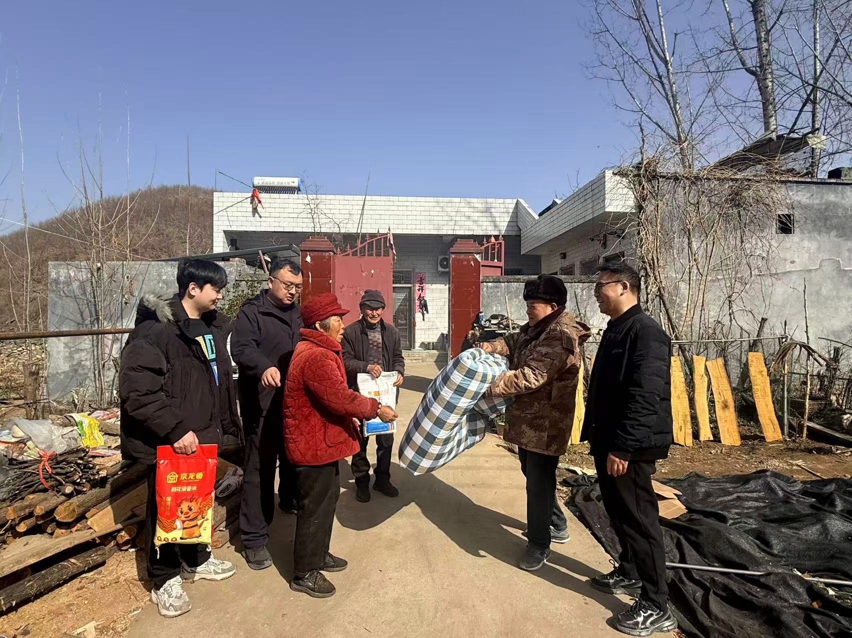 慰问组一行先后走进帮扶群众家中,为他们送上大米、面粉、棉被、毛毯等生活物资,详细询问家庭近况、身体状况与过冬保障情况,重点围绕子女就学、大病就医、日常生计等群众最关心、最直接的民生问题,与大家拉家常、听心声、解疑惑。工作人员耐心倾听群众诉求,细致讲解相关帮扶政策,叮嘱大家注意冬季用火用电安全、做好防寒保暖,鼓励大家保持乐观心态、积极面对生活,让寒冬里充满浓浓暖意。