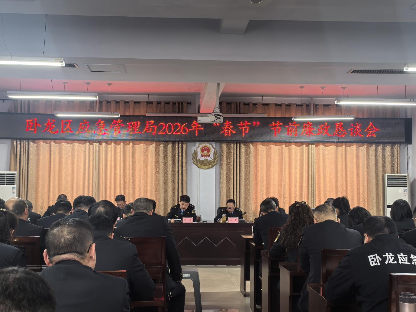 春节将至,为深入贯彻落实全面从严治党要求,严明节日期间纪律规矩,防范 “四风” 问题反弹回潮,切实筑牢全局干部职工廉洁自律思想防线。近日,卧龙区应急管理局组织召开春节前廉政恳谈会。